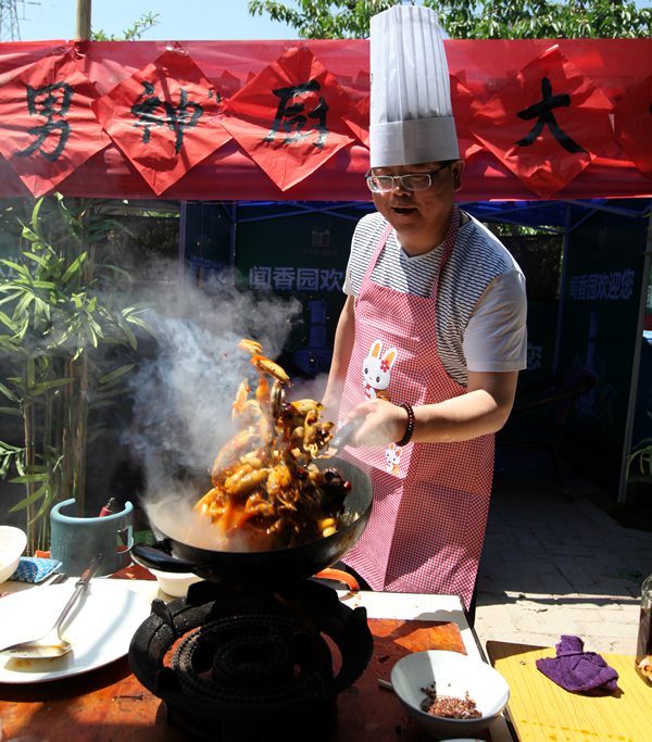 在一個(gè)百花齊放的農(nóng)家院里,近百個(gè)人大男人,他們或是戴著高高的廚師帽,或是圍扎著統(tǒng)一顏色的圍裙,或是佩戴自己設(shè)計(jì)的袖標(biāo),分成九個(gè)小組,各自大顯身手,忙碌著自己團(tuán)隊(duì)的參賽菜品。原來這是西區(qū)管線所工會(huì)委員會(huì)舉辦的“我是男神廚藝大賽”正在緊鑼密鼓的進(jìn)行中。