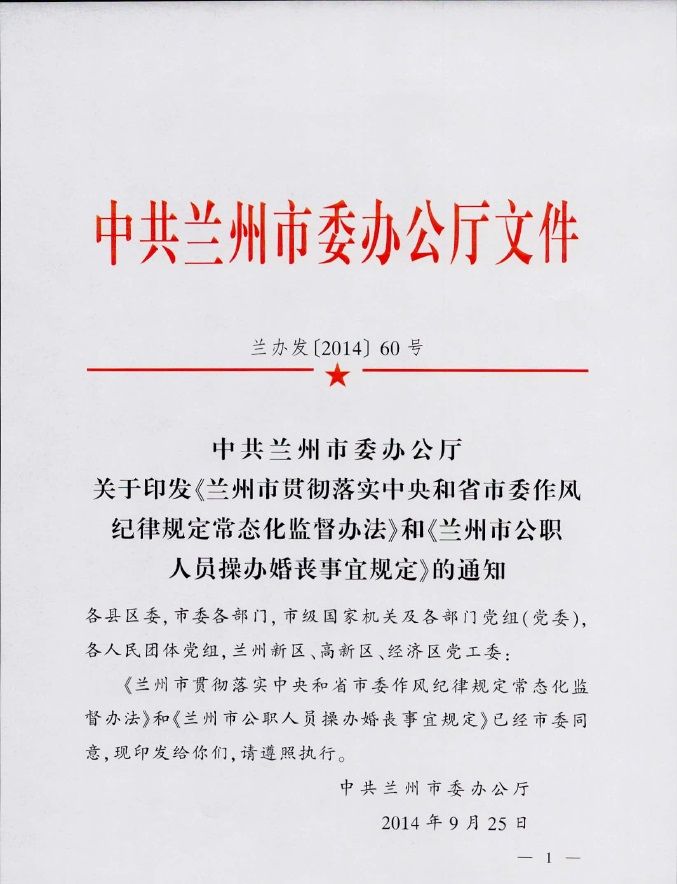 蘭辦發(fā)[2014]60號(hào)常態(tài)化監(jiān)督和婚喪嫁娶